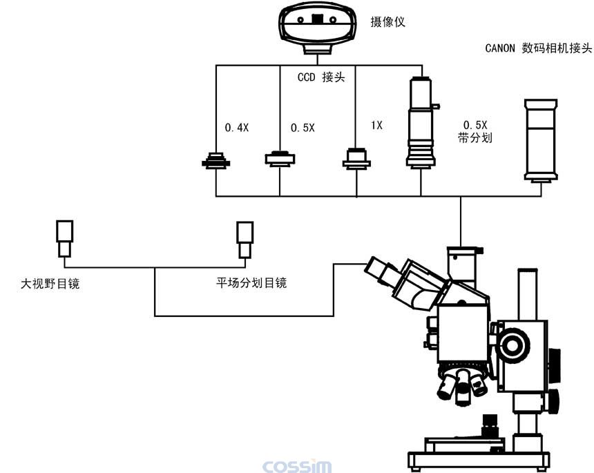 • 數(shù)碼型三目倒置金相顯微鏡CMY-100M:顯微鏡+相機適配鏡+佳能單反相機+測量軟件